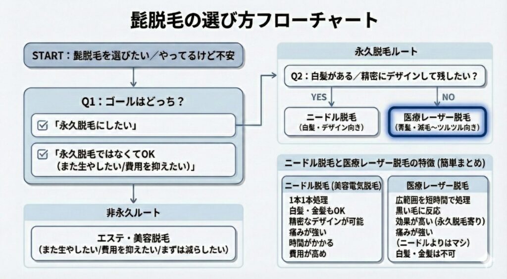 この記事では、髭脱毛の「終わり」を自分でコントロールするための判断基準を整理しました。